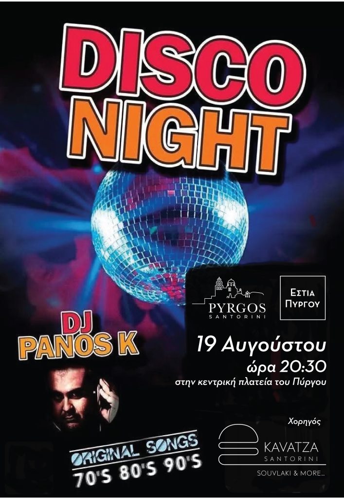 19/8 Βραδιά ντίσκο (DISCO NIGHT) στον χώρο των εκδηλώσεων στη κεντρική πλατεία του Πύργου