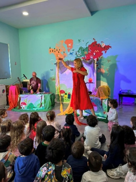 Μια διαδραστική αφηγηματική παράσταση που πλαισιώνεται από ηχητικά τοπία, ζωντανά μουσικά όργανα και τραγούδια και τεχνικές από την μουσικοκινητική και το θεατρικό παιχνίδι, που παροτρύνουν την συμμετοχή των παιδιών.