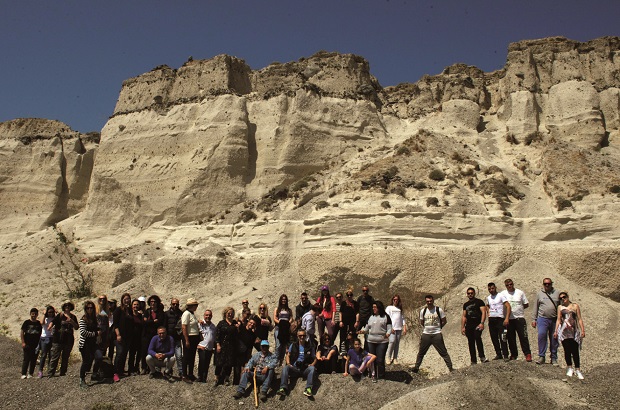 - το Ορυχείο Μεταξά (πρώην Μαυρομάτη) και εκστασιαστήκαμε από διάσημη τομή της μινωικής έκρηξης (φοιτητές από όλο το κόσμο έρχονται εδώ και μελετούν τα στρώματα της στάχτης που η μινωική έκρηξη έριξε πάνω στο νησί), απολαύσαμε την υπέροχη θέα της «Καλδέρας» και νιώσαμε τον κίνδυνο στην άκρη του «Χάρακα» (δεξαμενή αποθήκευση της θηραϊκής γης, στα κρεμνά της «Καλδέρας» για φόρτωση των καραβιών),