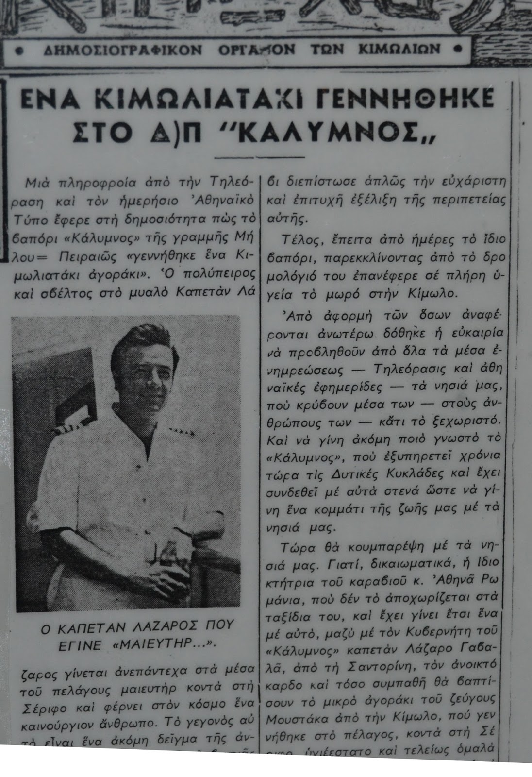 Ο γιος του, ο Κώστας, να τον περινένει στις Καμάρες να τον δει με το “Κάλυμνος”.