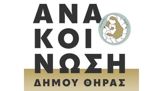 Ο Δήμος Θήρας ενημερώνει ότι από την 16η Νοεμβρίου 2025 θα είναι αναρτημένες στο Τμήμα Υπηρεσιών Δόμησης & Πολεοδομικών Εφαρμογών οι παρακάτω μελέτες-προτάσεις:Οι ενδιαφερόμενοι ιδιοκτήτες και φορείς καλούνται όπως προσέρχονται από την 16/11/2025 έως και την 05/12/2025 στα γραφεία του τμήματος Υπηρεσιών Δόμησης και πολεοδομικών εφαρμογών του Δήμου κατά τις ημέρες Δευτέρα έως Παρασκευή και ώρες 9:00-11:00 ώστε να λαμβάνουν γνώση της πρότασης και να υποβάλλουν τυχόν ενστάσεις.