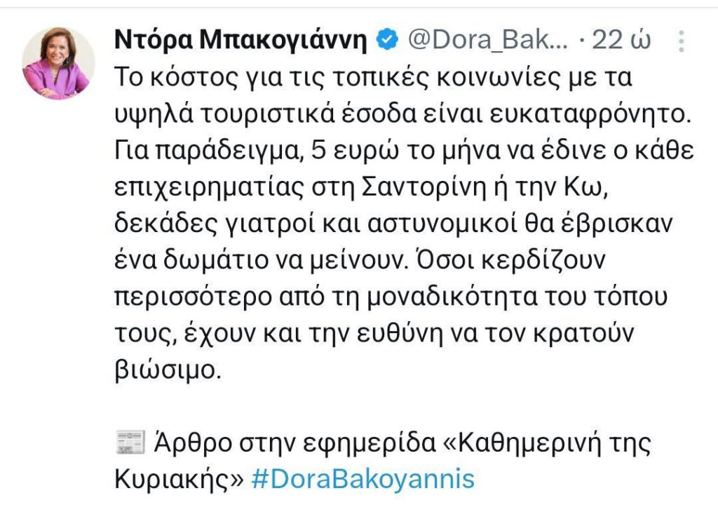 Αντί, λοιπόν, να συζητάμε για νέα βάρη στον τουρισμό, ας εστιάσουμε όλοι στις ευθύνες μας. Οι επιχειρηματίες του τουρισμού τις ευθύνες τους τις αναλαμβάνουν καθημερινά – το ζητούμενο είναι να κάνει το ίδιο και η Πολιτεία