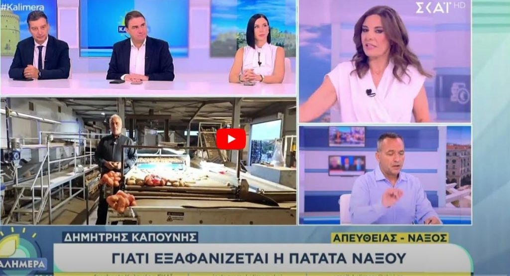 Μιλώντας στην εκπομπή «Καλημέρα» του ΣΚΑΪ ο Πρόεδρος της Ένωσης Αγροτικών Συνεταιρισμών Νάξου, Δημήτρης Καπούνης, επεσήμανε εκ νέου ότι, λόγω της λειψυδρίας που πλήττει το νησί μας, η παραγωγή της Πατάτας Νάξου Π.Γ.Ε. έχει δραματικά μειωθεί, το προϊόν δεν θα φυτευτεί τώρα το φθινόπωρο και έπειτα δεν θα βρίσκεται πια στα ράφια του καταναλωτή.