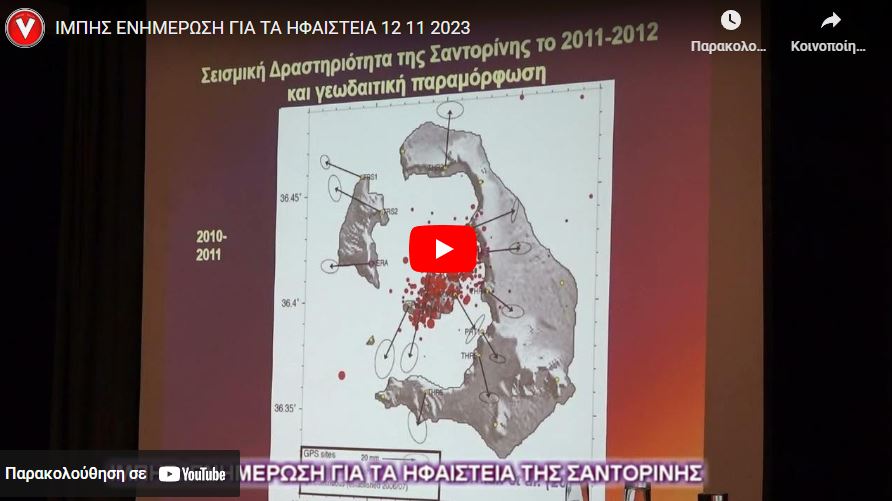 2.       «Μελετώντας τη δομή του ηφαιστείου της Σαντορίνης μέσα από την σεισμική κρίση», Κωσταντίνος Παπαζάχος, Καθηγητής Φυσικής της Λιθόσφαιρας, Σεισμολογίας & Εφαρμοσμένης Γεωφυσικής ΑΠΘ, Πρόεδρος ΙΜΠΗΣ
