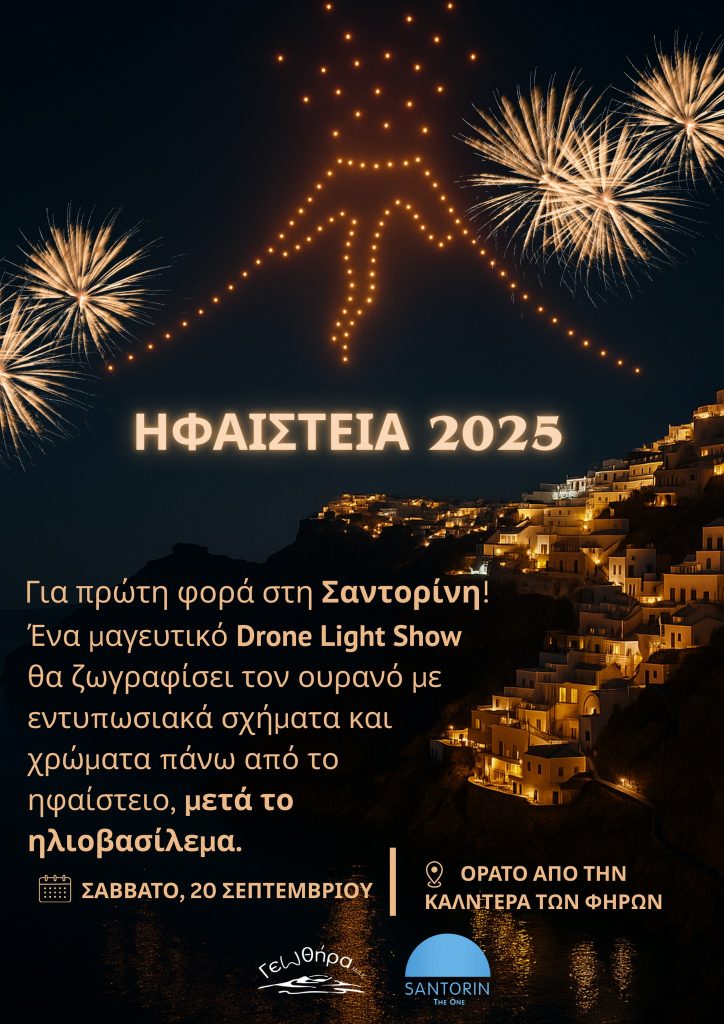 Η Δημοτική Επιχείρηση ΓΕΩΘΗΡΑ Μ.Α.Ε., με στόχο την αναβάθμιση του θεσμού των «Ηφαιστείων», παρουσιάζει για πρώτη φορά ένα εντυπωσιακό Drone Light Show.