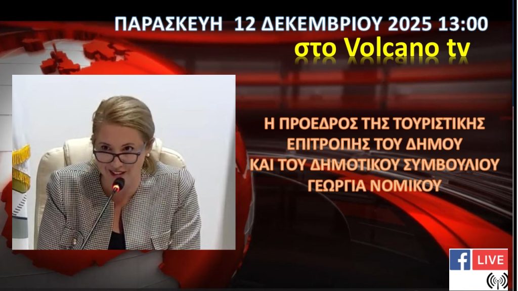 Η Πρόεδρος του Δημοτικού Συμβουλίου κ. Γ.ΝΟΜΙΚΟΥ στο VOLCANON TV την Παρασκευή 12 Δεκεμβρίου 2025 16 Views 10 Δεκεμβρίου, 2025 Κυκλάδες, Νότιο Αιγαίο, Σαντορίνη thira