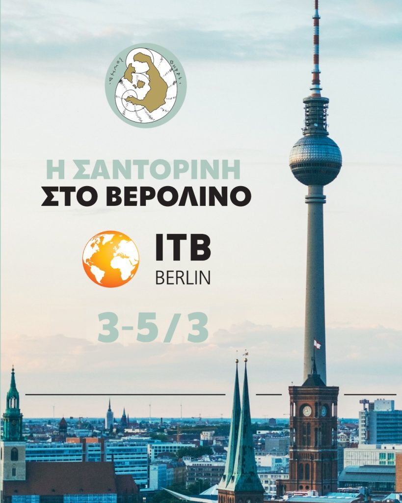 Ο Δήμος Θήρας θα συμμετέχει και φέτος στη διεθνή τουριστική έκθεση ITB Berlin 2026, που πραγματοποιείται από τις 3 έως τις 5 Μαρτίου 2026 στο Berlin ExpoCenter City.Πρόκειται για μία από τις μεγαλύτερες και σημαντικότερες διεθνείς τουριστικές εκθέσεις στον κόσμο, αποτελώντας πλατφόρμα για τη διεθνή τουριστική αγορά με εκθέτες και επαγγελματίες από πάνω από 160 χώρες.