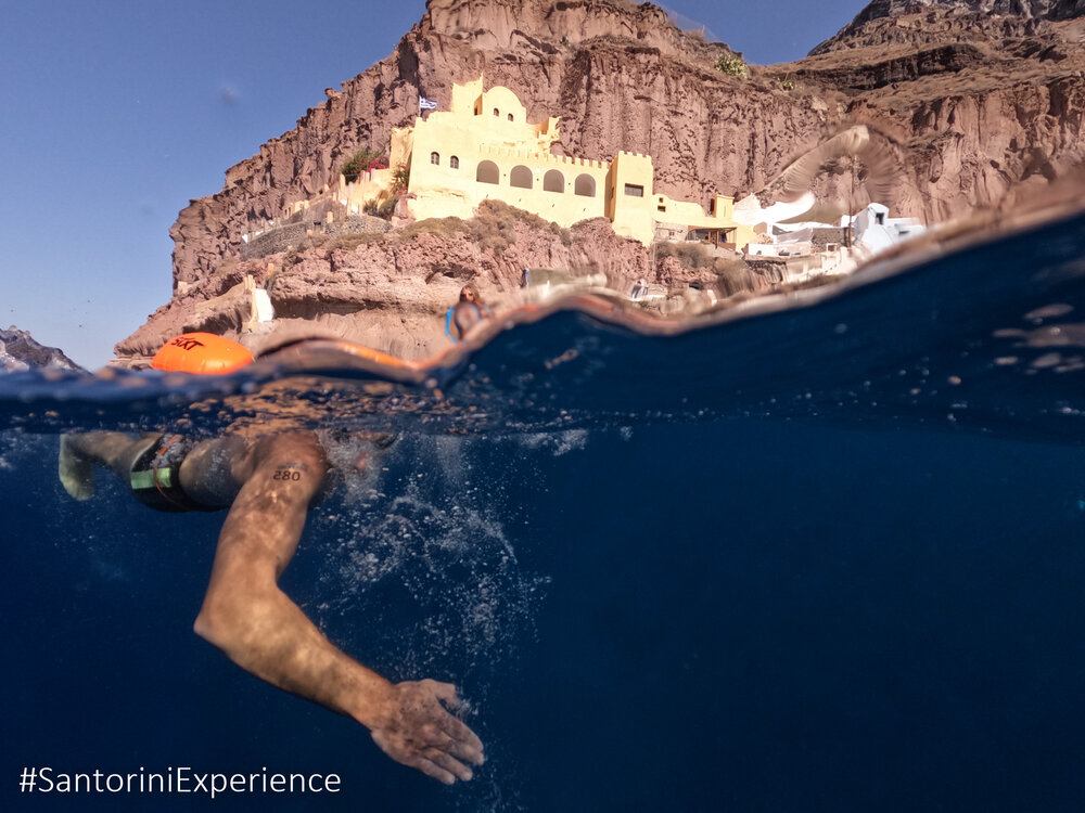 Η Παραολυμπιονίκης Ευθυμία Γκουλή κολυμπά στη Σαντορίνη