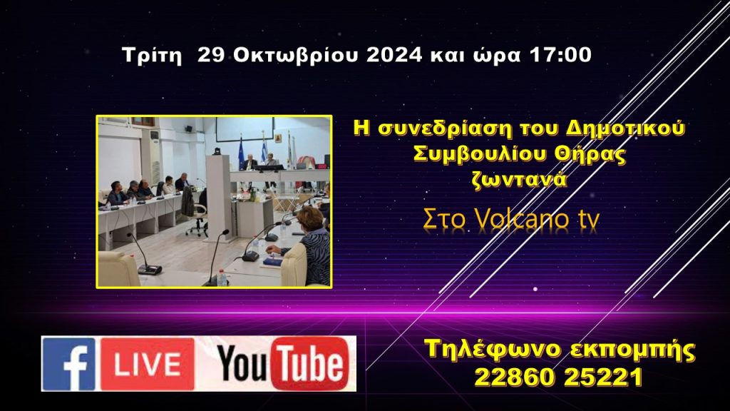Live στο κανάλι της Σαντορίνης η διπλή συνεδρίαση του ΔΣ της Τρίτης 29 Οκτωβρίου 2024