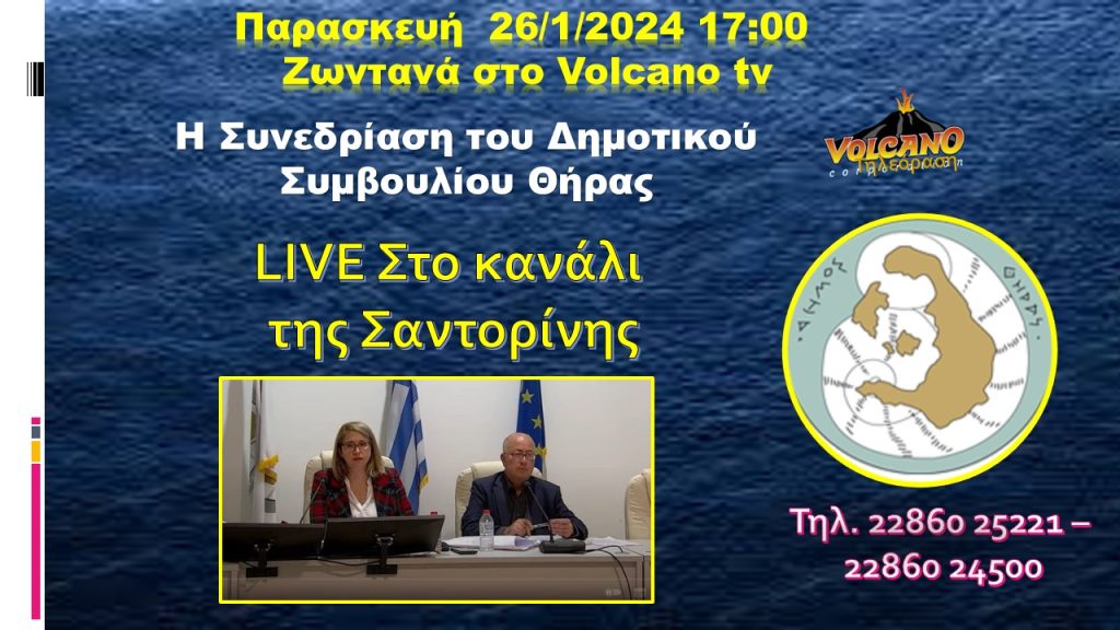 Live στο Volcano tv η συνεδρίαση του Δημοτικού Συμβουλίου Θήρας