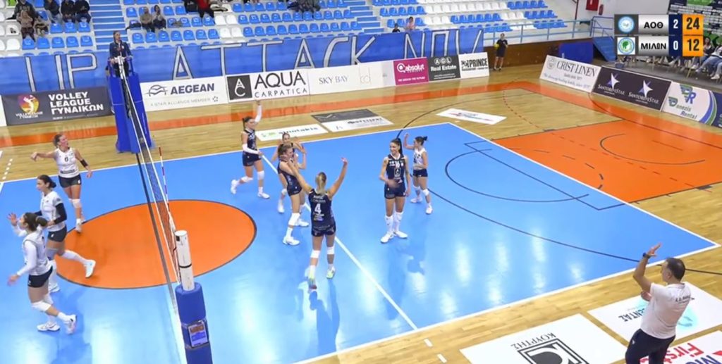 Α.Ο. Θήρας (Μανώλης Σκουλικάρης): Αντσάντε, Πάβιτσιτς 15 (14/30 επ., 1 μπλοκ, 57% υπ. – 21% άριστες), Σιρίνινα 5 (4/11 επ., 1 μπλοκ), Μάασε 13 (13/21 επ.), Τσιόγκα 7 (4/7 επ., 3 μπλοκ), Άμποτ 2 (1/7 επ., 1 μπλοκ, 20% υπ. – 20% άριστες) / Τουλγαρίδου (λ, 67% υπ. – 33% άριστες), Σαουλίδου (λ, 40% υπ. – 0% άριστες), Γενιτσαρίδη 3 (3/5 επ., 33% υπ. – 0% άριστες), Δημητριάδη 3 (2 μπλοκ, 1 άσος), Κεραμιτσοπούλου 3 (3/6 επ.), Θωμαΐδου 1 (1 άσος), Μπαρμπαλιού.