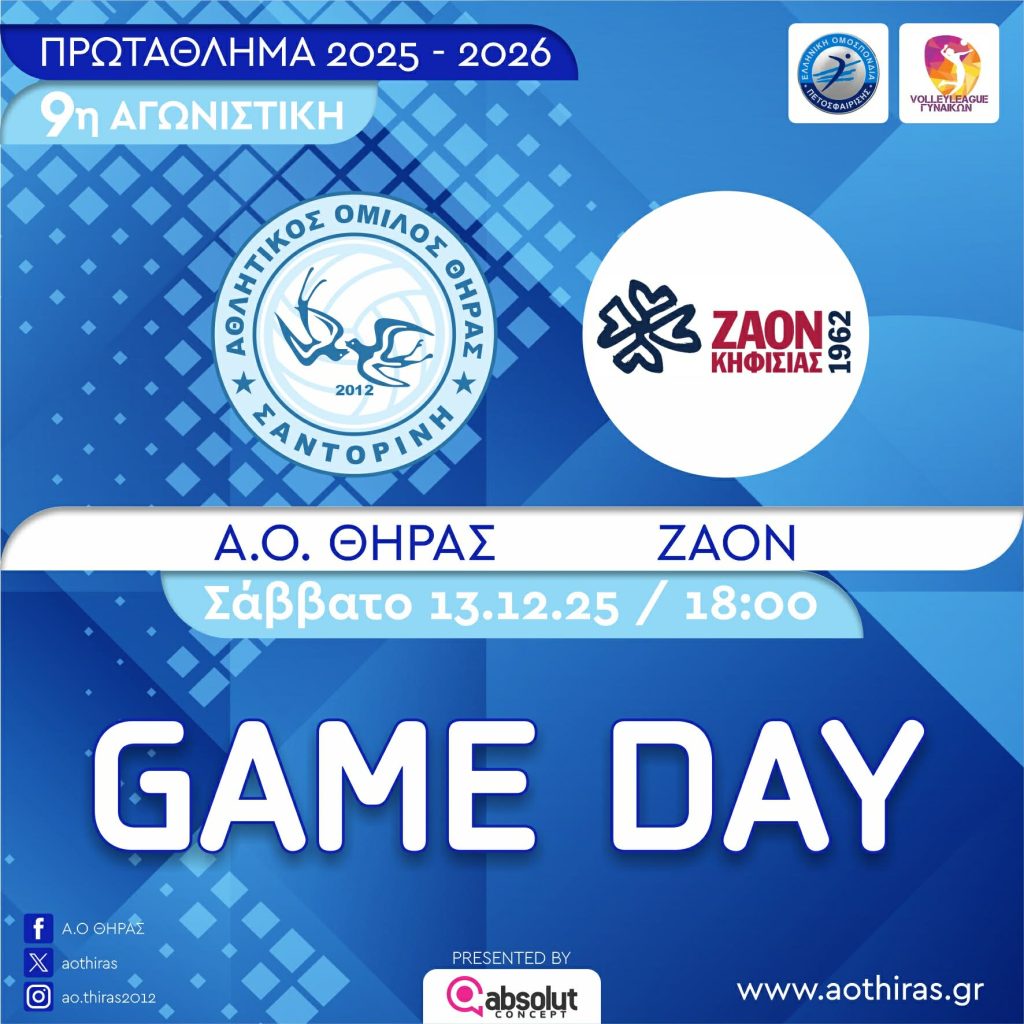 Ο Α.Ο. ΘΗΡΑΣ καλεί όλους τους φιλάθλους της Σαντορίνης να στηρίξουν την ομάδα μας σε ένα ακόμη δυνατό παιχνίδι στο πλαίσιο της 9ης αγωνιστικής του Πρωταθλήματος 2025–2026.
