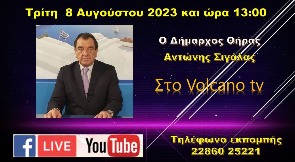 Ο Δήμαρχος Θήρας στο Volcano tv 8-8-2023