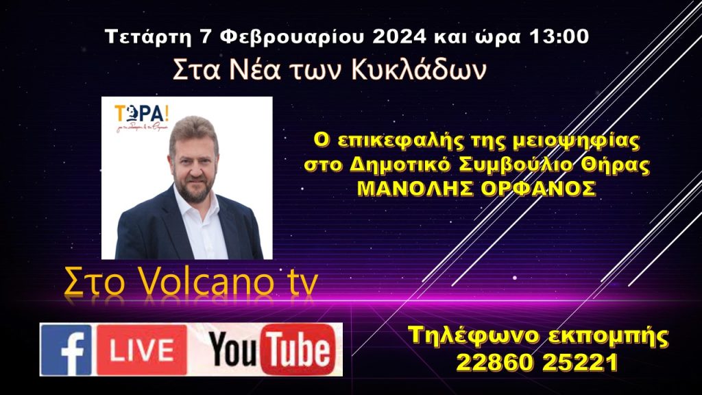 • ΣΥΝΕΝΤΕΥΞΗ Η ΕΠΑΡΧΟΣ ΘΗΡΑΣ ΣΤΟ VOLCANO TV 5 12 2025
