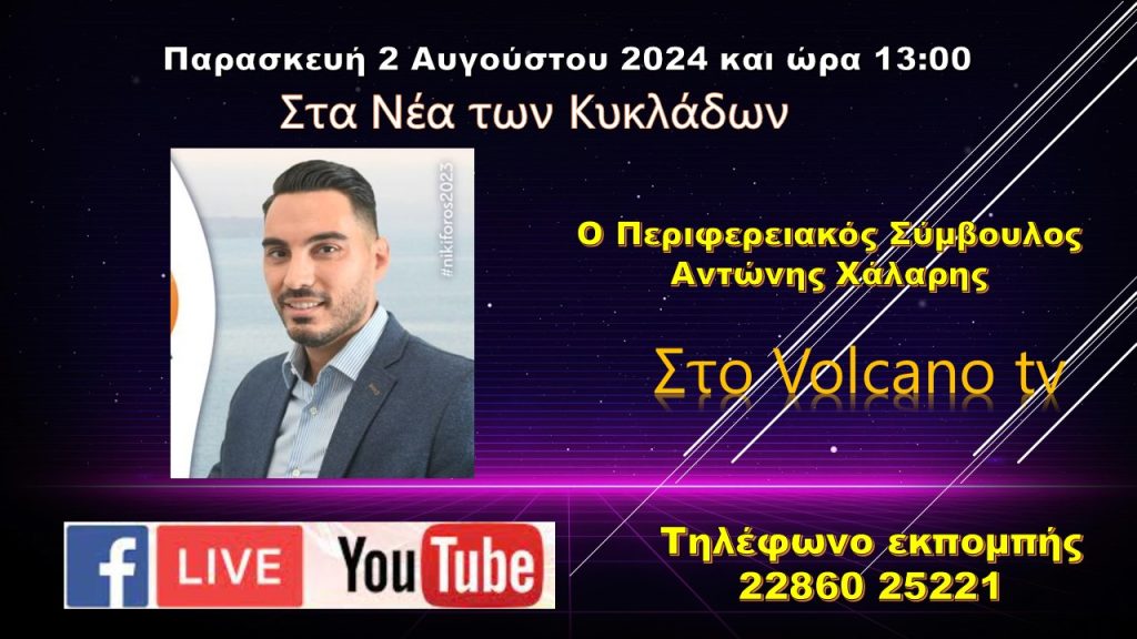 O Περιφερειακός Σύμβουλος Αντώνης Χάλαρης στο Volcano tv (Παρασκευή 2 Αυγούστου 13:00)