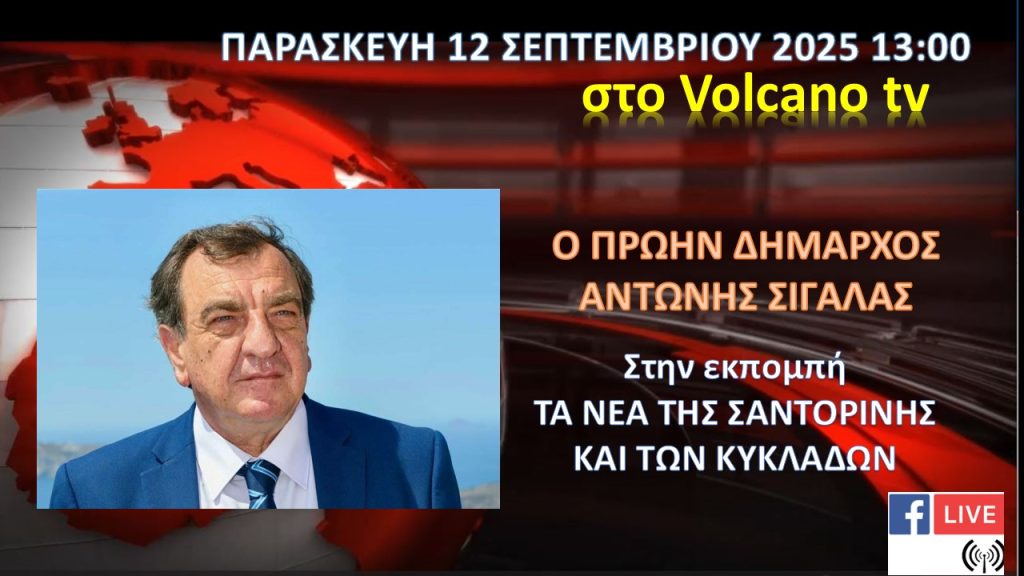 Ο πρώην Δήμαρχος Αντώνης Σιγάλας στο κανάλι της Σαντορίνης (Παρασκευή 12/9 και ώρα 13:00)