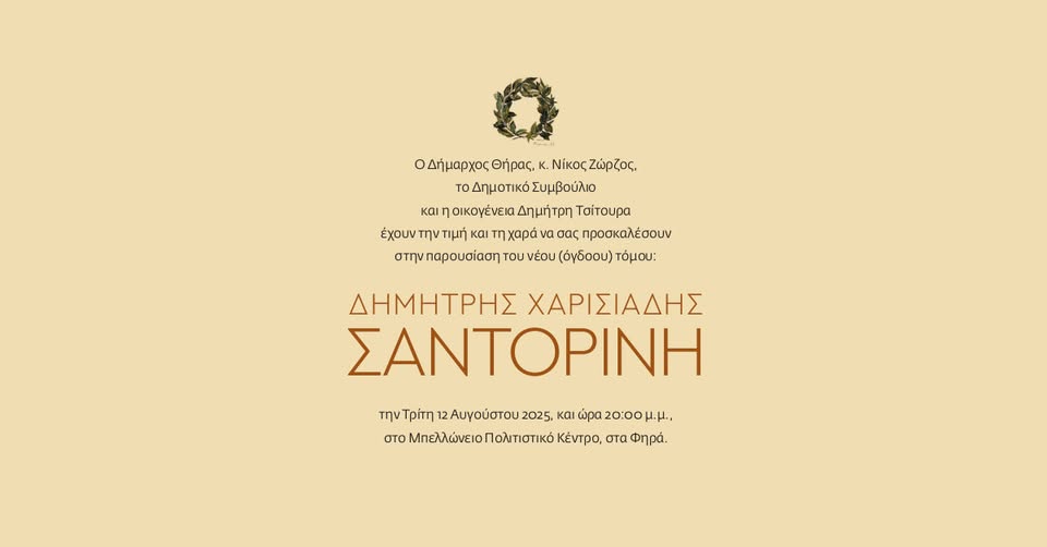 Ο Δήμος Θήρας και η οικογένεια Δημήτρη Τσίτουρα σας προσκαλούν στην παρουσίαση