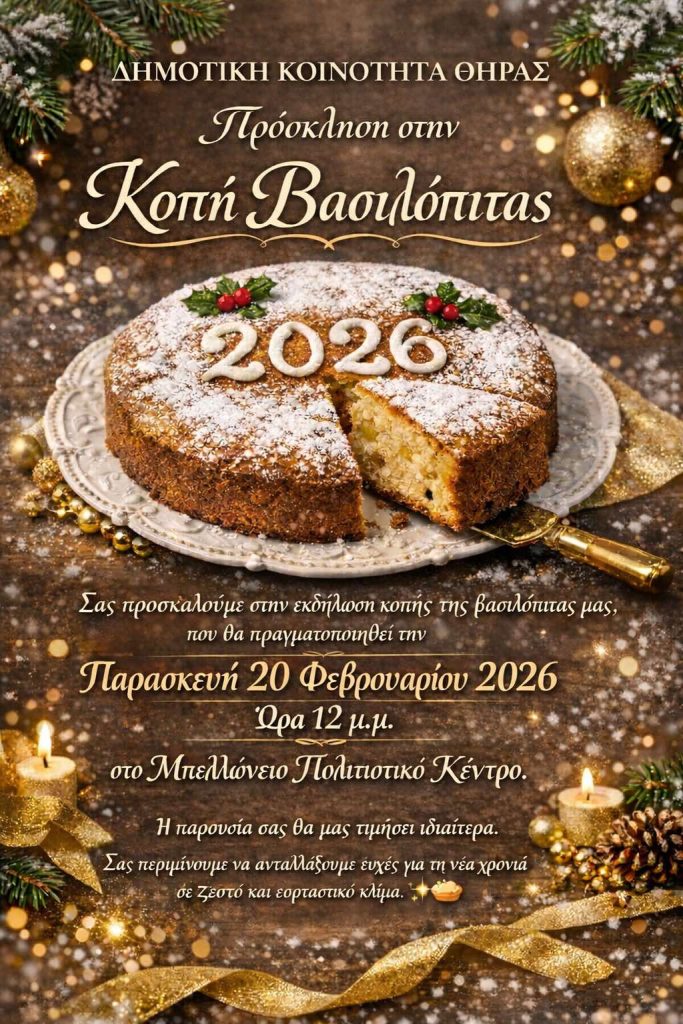 Κοινότητας Θήρας, που θα πραγματοποιηθεί την Παρασκευή 20 Φεβρουαρίου