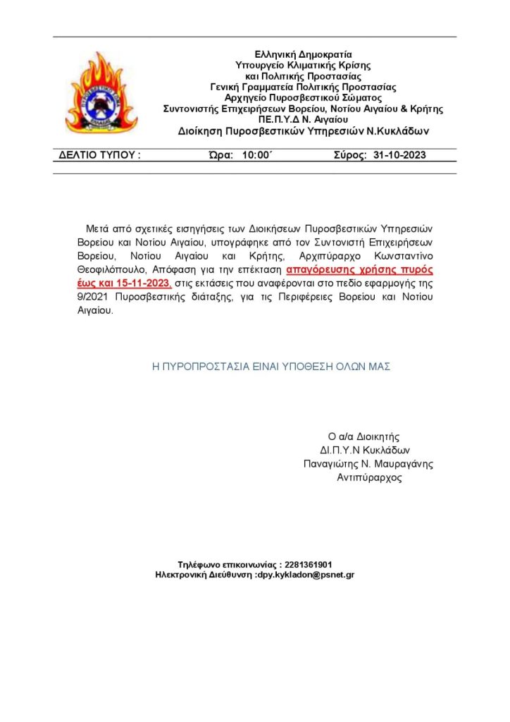 Προσοχή: Επέκταση της απαγόρευσης πυρός έως και την 15-11-2023