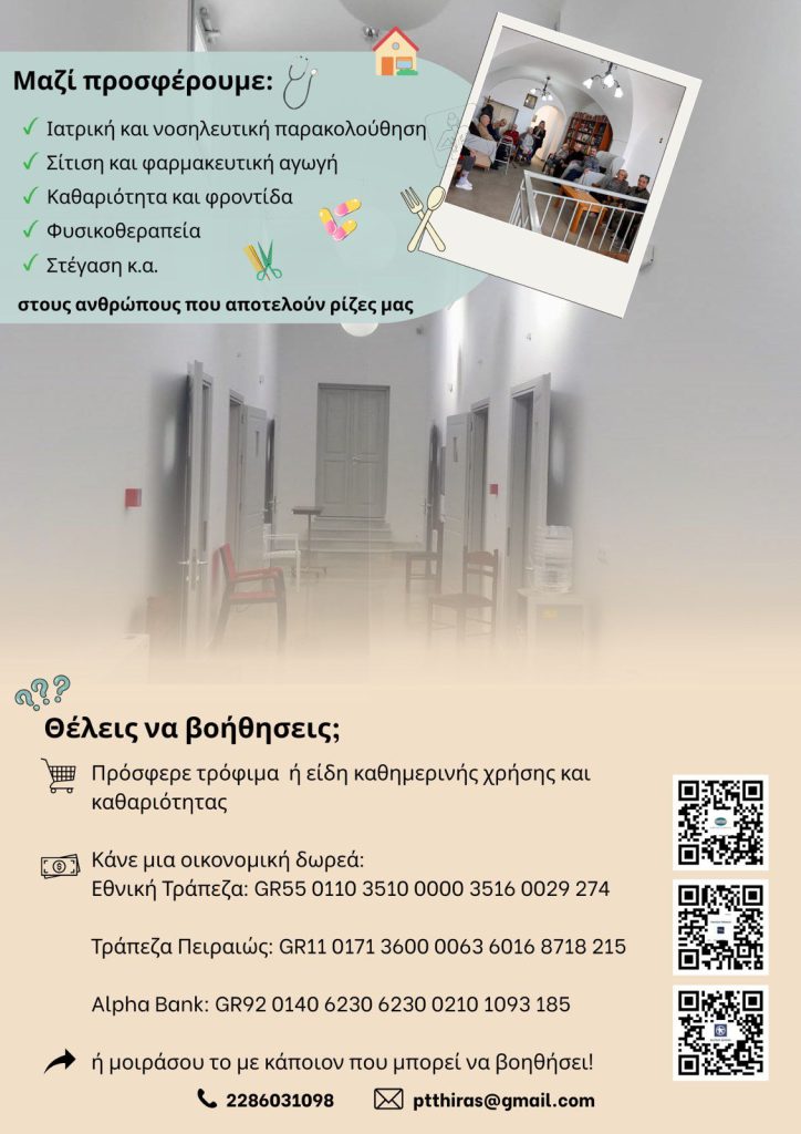 Πτωχοκομείο Θήρας: Όλοι μαζί ας στηρίξουμε την προσπάθειά μας… Κάθε μικρή προσφορά είναι μεγάλη στήριξη για το έργο μας.