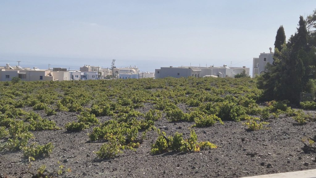 Οι επιπτώσεις της κλιματικής κρίσης με καύσωνες, ανομβρία και ζεστούς χειμώνες έχουν φέρει στα όριά του τον γερασμένο σαντορινιό αμπελώνα, ο οποίος σε αρκετές περιπτώσεις καλλιεργείται με “πρωτόκολλο χαμηλού κόστους” που περιλαμβάνει μόνο κλαδέματα, θειάφισμα και καταπολέμηση των ζιζανίων. Χαρακτηριστικό είναι ότι η μέση βροχόπτωση έχει πέσει από 300-350 χιλιοστά σε μόλις 160-170 χιλιοστά τις τελευταίες τρεις χρονιές.