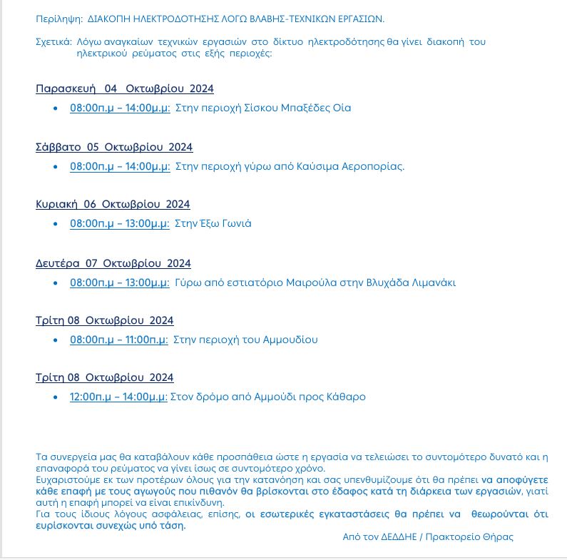 Σαντορίνη- διακοπές ηλεκτρικού ρεύματος