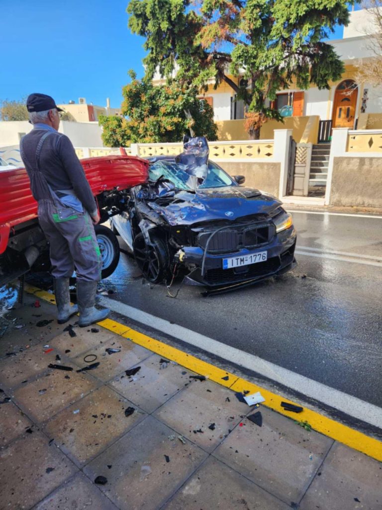 Βροχερή ήταν όλη η σημερινή ημέρα στο νησί, με τις καιρικές συνθήκες να δυσχεραίνουν σημαντικά την ορατότητα και την ασφάλεια στους δρόμους. Σε αυτό το πλαίσιο σημειώθηκε σοβαρό τροχαίο ατύχημα, όταν όχημα μάρκας BMW, που κινούνταν με μεγάλη ταχύτητα από τη νότια πλευρά του νησιού, επιχείρησε να προσπεράσει εν κινήσει λεωφορείο χωρίς καθαρή εικόνα του δρόμου. Αποτέλεσμα ήταν η σφοδρή σύγκρουση με σταθμευμένο όχημα μεγάλου κυβισμού, τύπου ημιφορτηγού. Ο οδηγός του Ι.Χ. είναι αλλοδαπός, μόνιμος κάτοικος του νησιού, ενώ ο οδηγός του ημιφορτηγού είναι ντόπιος από το Μεγαλοχώρι. Και τα δύο οχήματα υπέστησαν εκτεταμένες ζημιές, ουσιαστικά ολικής καταστροφής. Παρά τη σφοδρότητα της σύγκρουσης, προκαλεί πραγματικά θαυμασμό το γεγονός ότι και οι δύο οδηγοί βγήκαν ζωντανοί από τα οχήματα, χωρίς να τραυματιστούν, γεγονός που μπορεί να χαρακτηριστεί ως καθαρό θαύμα.