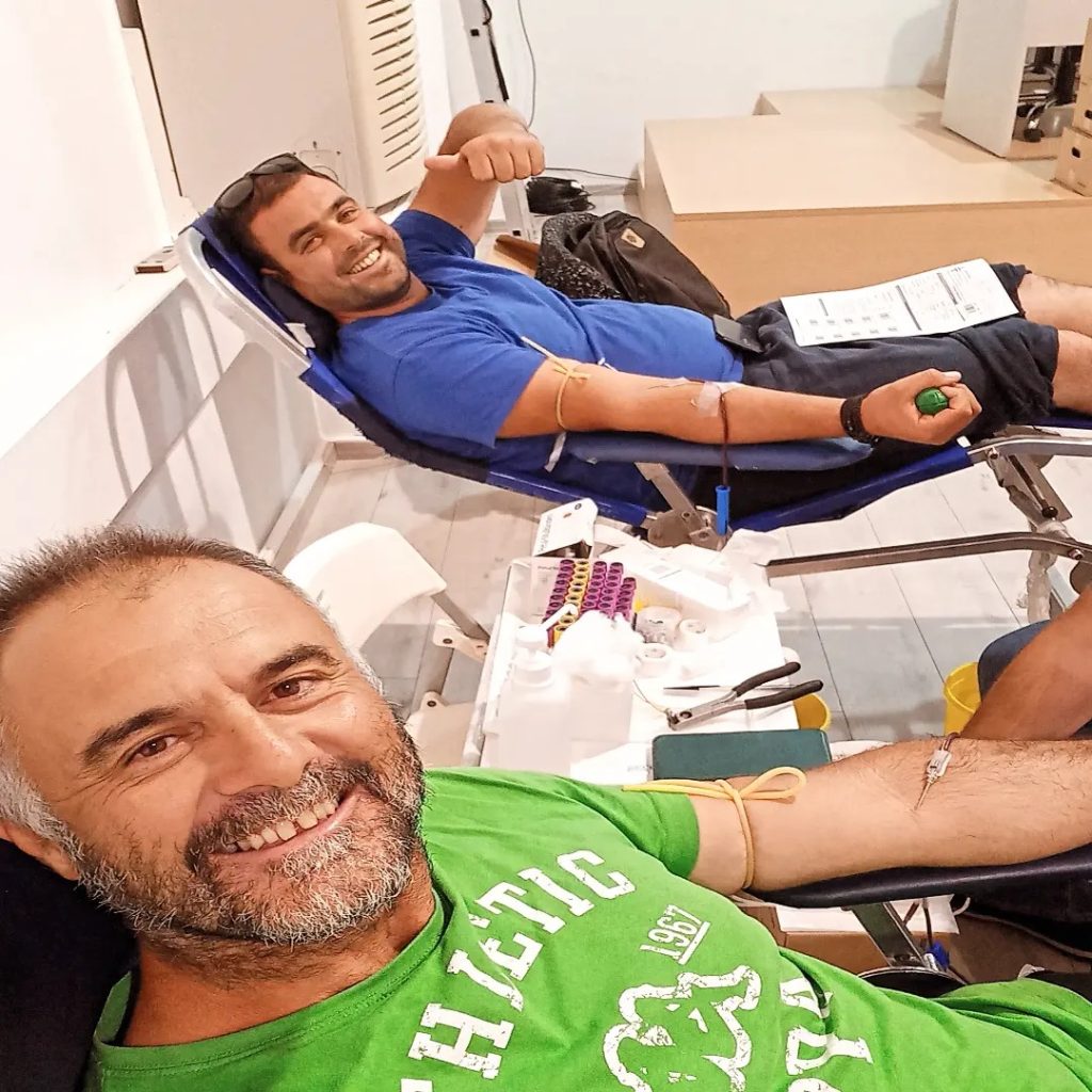 Δυό δικά μας παιδιά την ώρα που αιμοδοτούν.