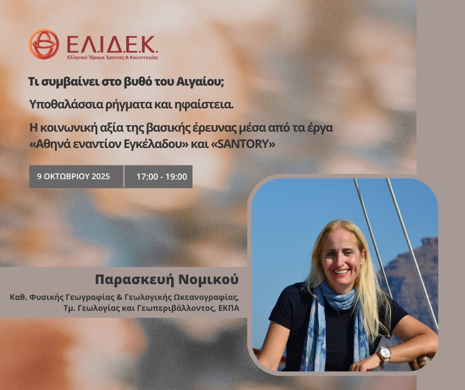 Η Επιστημονικά Υπεύθυνη του Έργου κ. Παρασκευή Νομικού, Καθηγήτρια Φυσικής Γεωγραφίας & Γεωλογικής Ωκεανογραφίας στο ΕΚΠΑ, θα αναδείξει τη συμβολή της παρακολούθησης του ηφαιστείου «Κολούμπο» στην επιστημονική κοινότητα καθώς και τον άμεσο αντίκτυπο στην κοινωνία.